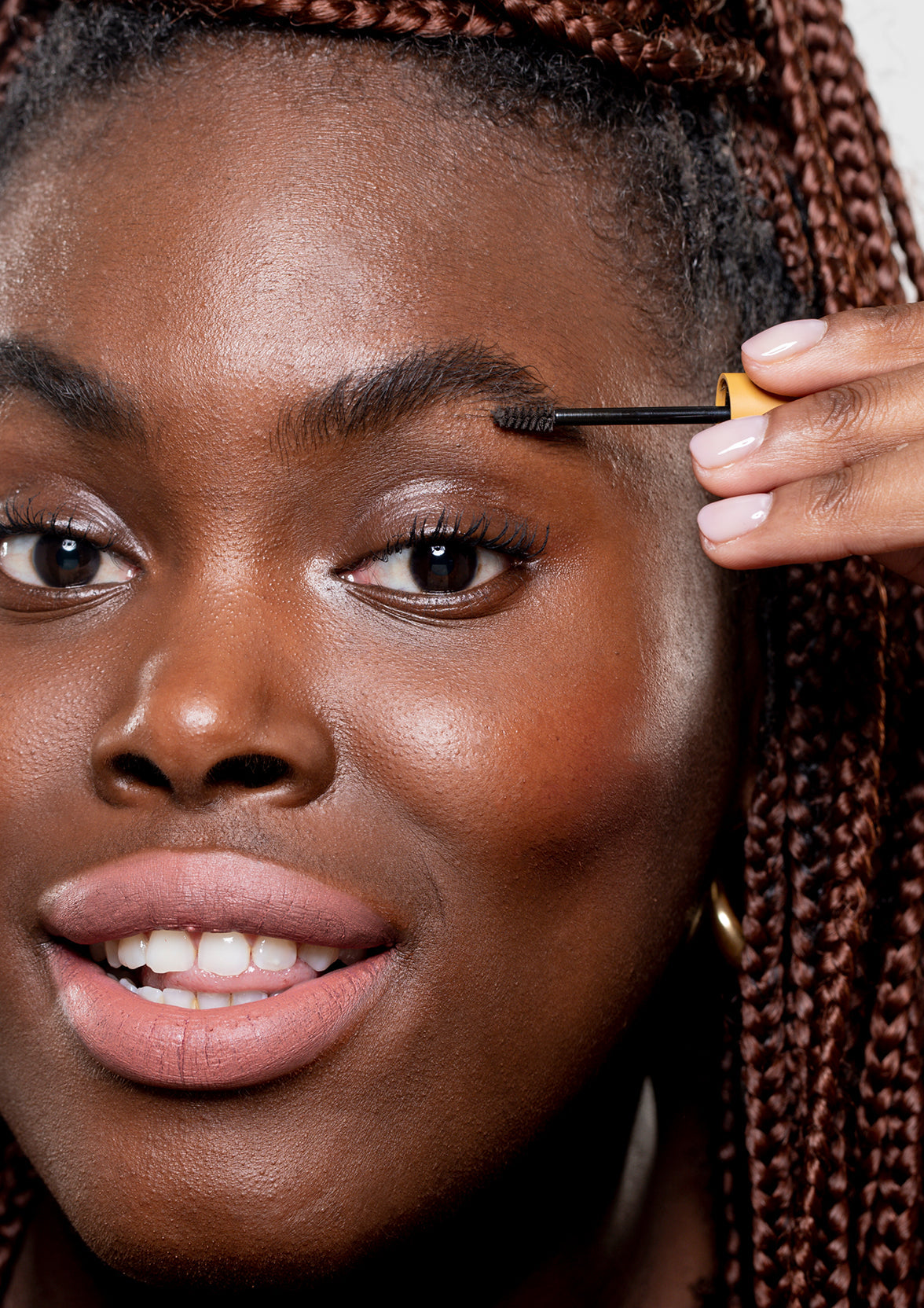 STEP 1: Fill in brows with Arch Support Brow Powder Gel in your shade (Lexi is wearing Medium Brown), wiping excess product on rim of tube to control application