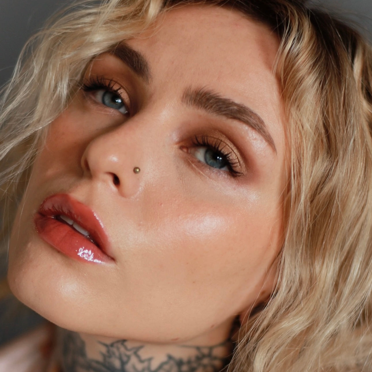 STEP 3: Apply Mixed Media Matte Liquid Eyeshadow in Shroom to the crease of your eyelids, blending with a brush.